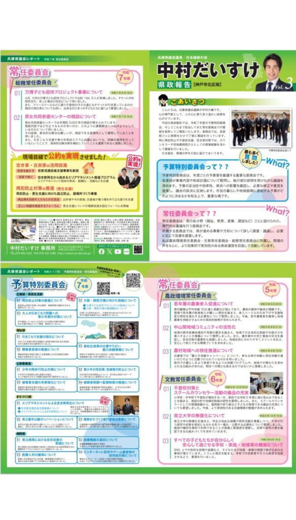 新しい県政報告紙を作成しました。個人、会派分含め年に4種類発行しています。